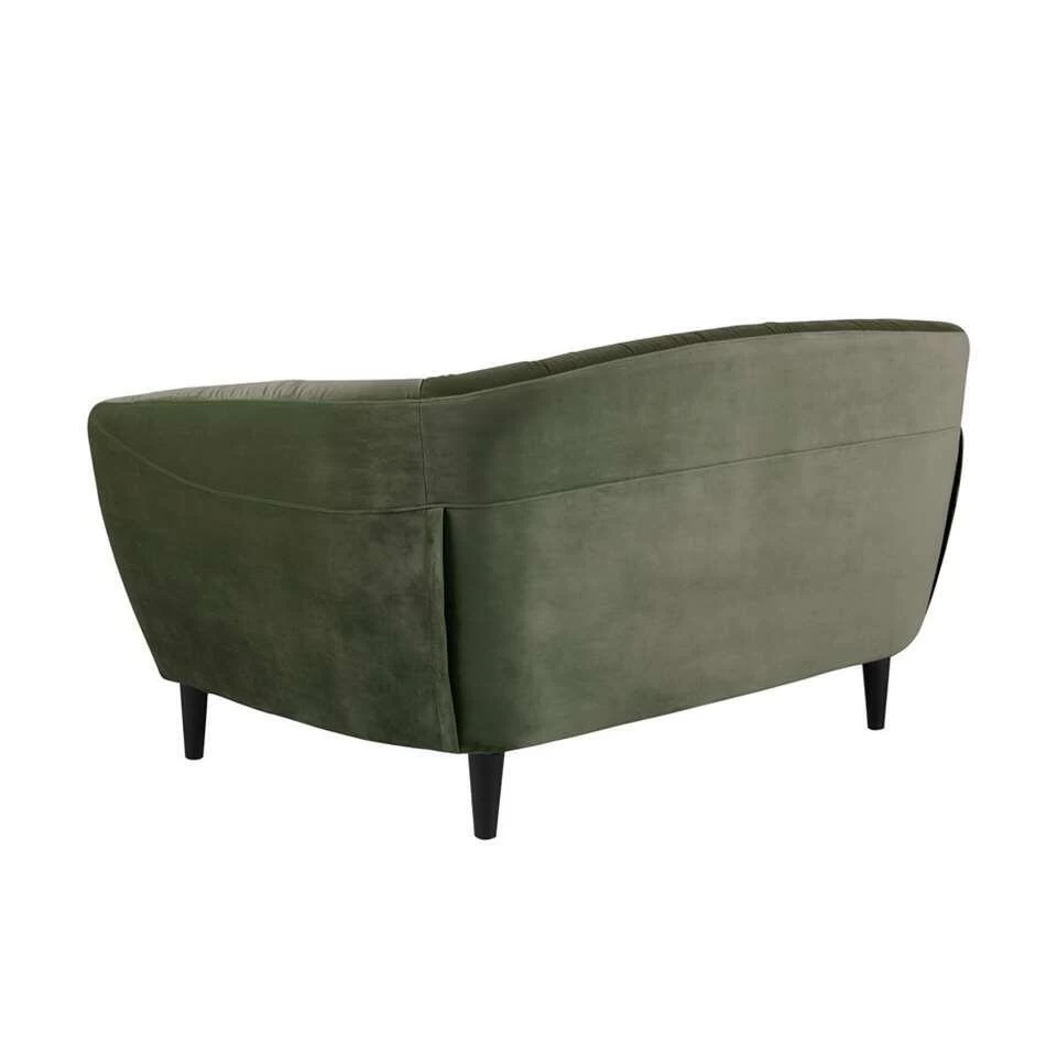 De groene kleur straalt warmte en rust uit en daarom heeft deze bank niet veel extra’s nodig. Je kunt er natuurlijk kussens in leggen, maar ook zonder accessoires is deze bank helemaal af.