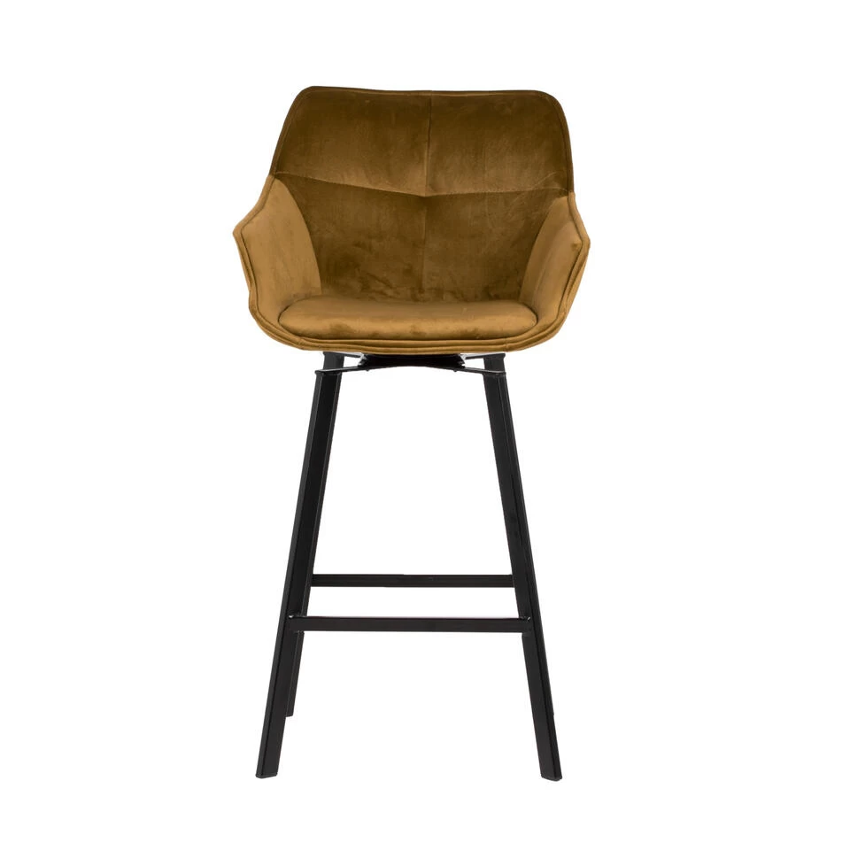 Met deze barstoel zit je altijd comfortabel. De rug- en armleuningen van de barstoel zijn bekleed met een velvet stof. Velvet is de trend van dit moment. De poot is gemaakt van staal met zwarte poedercoating. De barstoel is erg leuk in een industrieel, modern of urban chique interieur. En het leuke is deze barstoel is ook nog draaibaar!