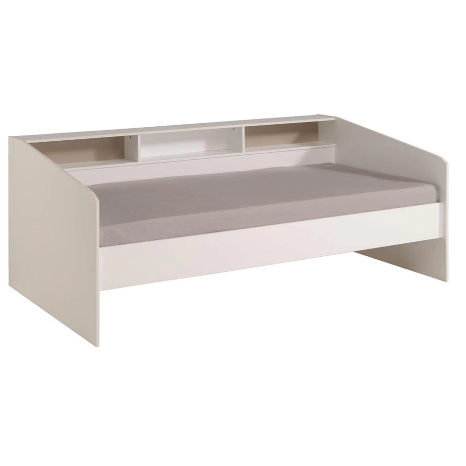 Bedbank Sleep is een leuke combinatie van bed en bank in de kleur wit. De bedbank heeft een totale afmeting van 81,7×112,7×203 cm, en het is geschikt voor een matras met een grootte van 90×200 cm. Door de drie opbergvakken is er voldoende ruimte voor boeken en diverse accessoires. De stijlvolle look maakt dat de bedbank zijn plekje vindt in ieder interieur.