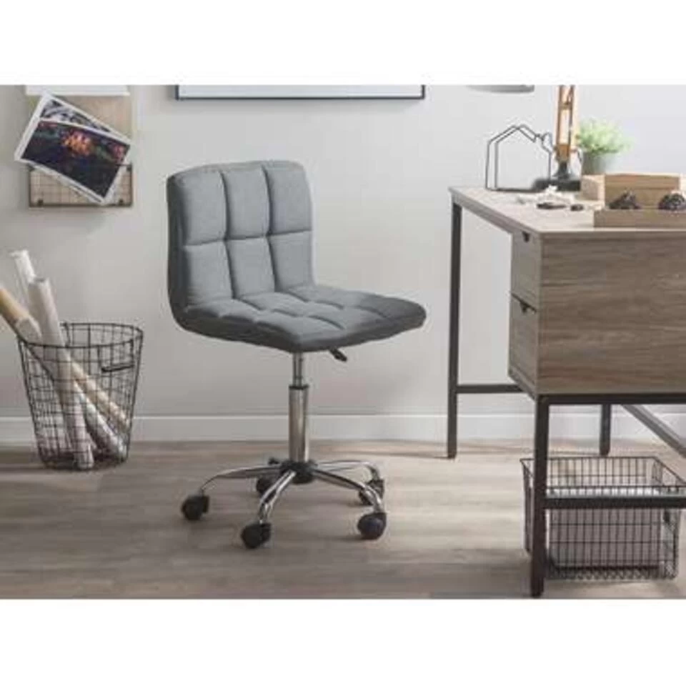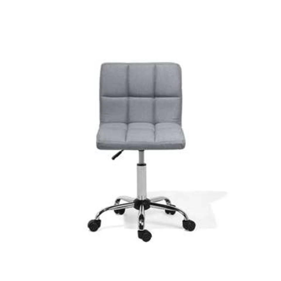 Elegante en klassieke bureaustoel in grijs. Voeg een vleugje elegantie toe aan je thuiskantoor met deze stijlvolle stoel. Het verchroomde onderstel en de comfortabele zetel en gestikte stofbekleding creëren een klassieke stoel met een modern tintje. Met de 360° draai- en hoogteverstelling kan je lange tijd comfortabel aan je bureau zitten zonder je rug te vermoeien.