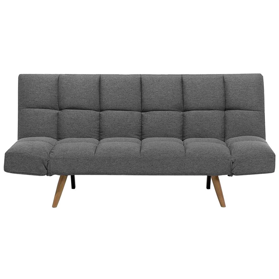 Comfortabele 3-zitsbank in donkergrijs. Deze moderne bank is ontworpen voor functionaliteit en kan volledig worden aangepast aan jouw voorkeuren. Het heeft verstelbare armleuningen en een verstelbare rugleuning en kan snel worden omgezet in een eenpersoonsbed met behulp van het kliksysteem. De vierkante opvulling maakt deze comfortabele bank tot een stijlvolle toevoeging aan jouw huis.