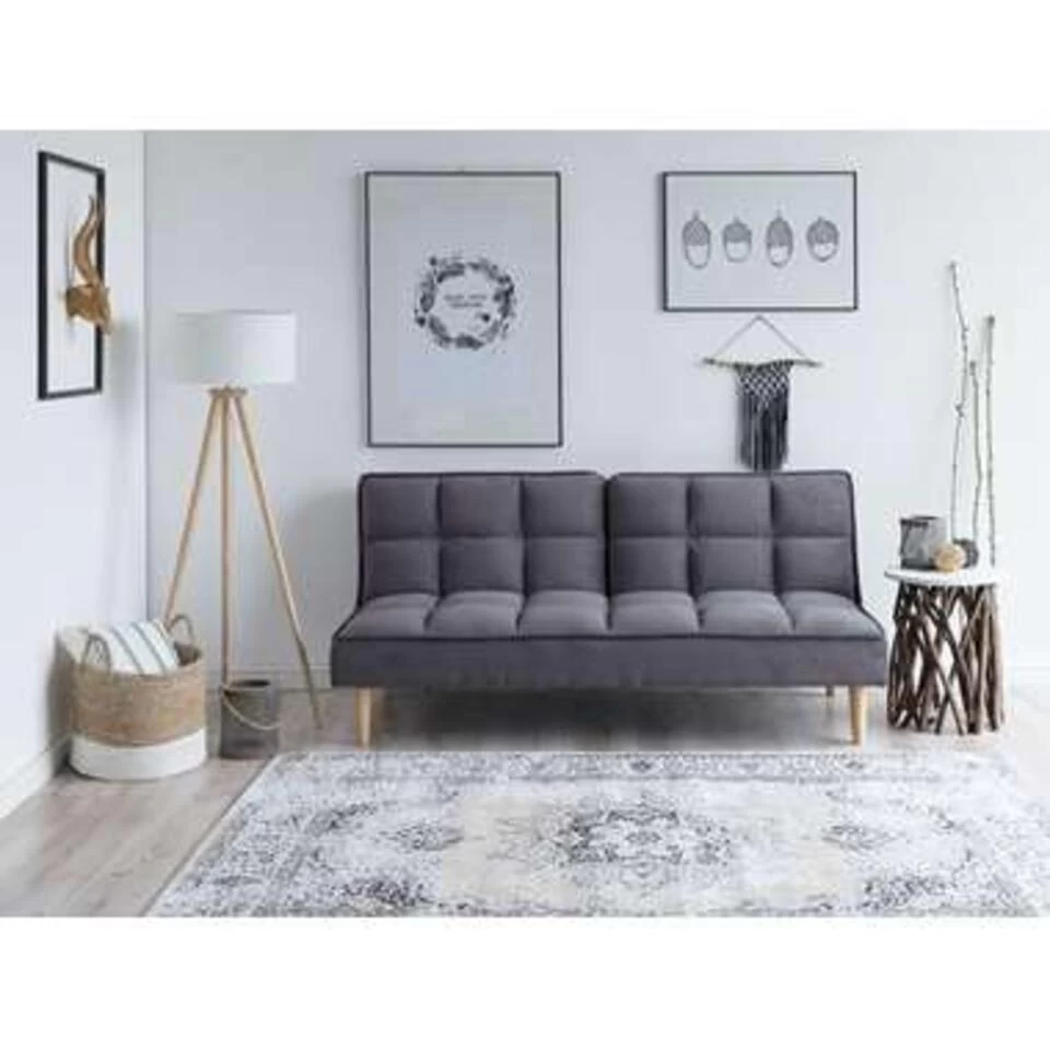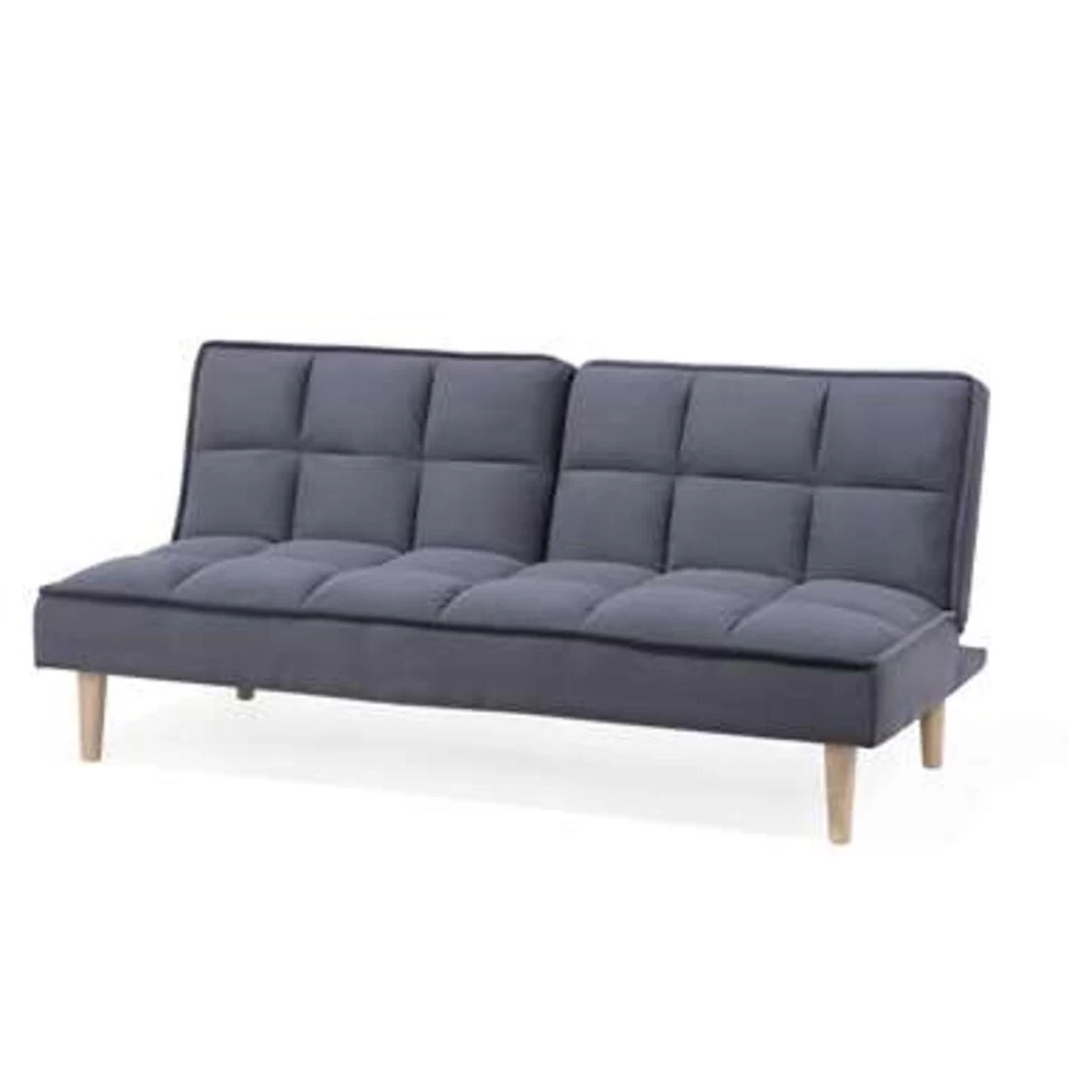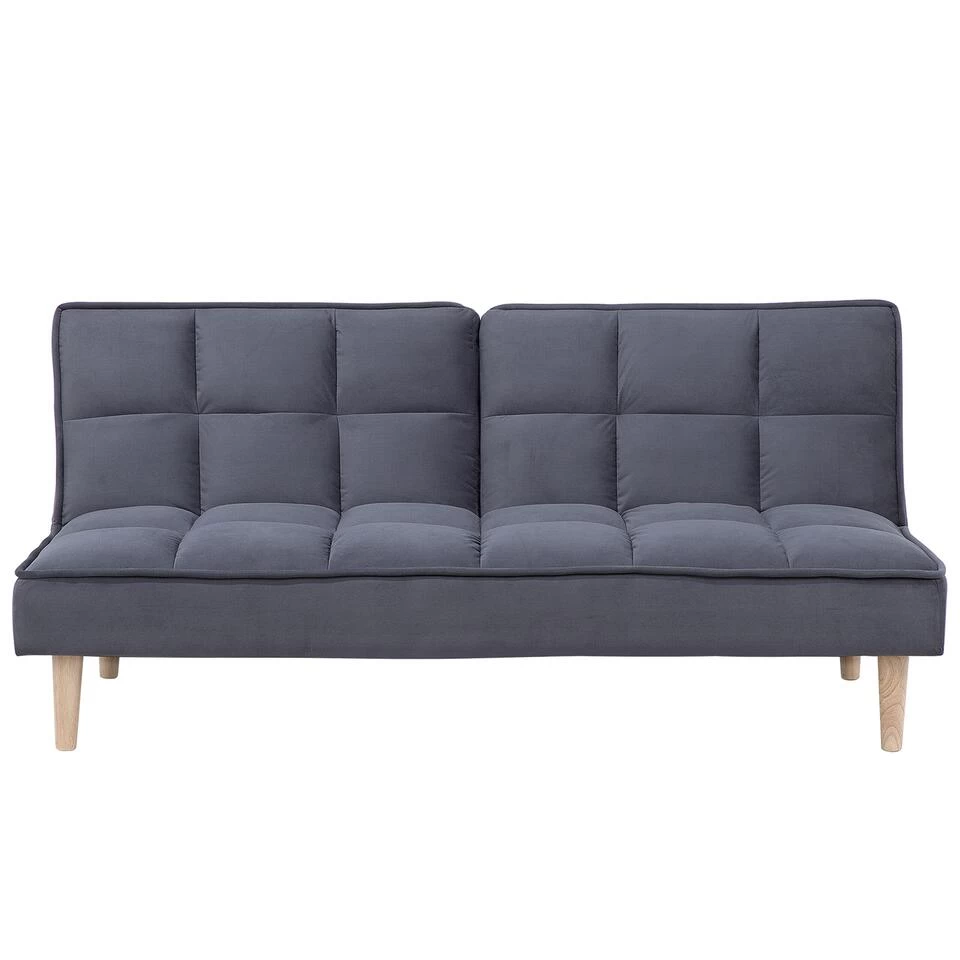 Multifunctionele slaapbank in donkergrijs. Overdag is deze slaapbank een gezellige, comfortabele bank en ’s avonds kan de bank worden uitgeklapt tot een comfortabele, ruime slaapplek in slechts een paar eenvoudige stappen. Een ideale oplossing wanneer je ruimte wilt besparen. De duurzame donkergrijze polyester hoes heeft een hip uiterlijk dankzij het vierkante gewatteerde patroon.