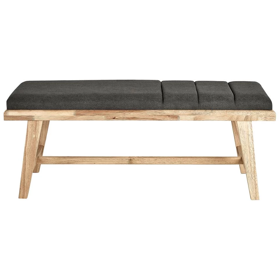 Scandinavische gestoffeerde gangbank. Geef je eetkamer of hal een extra dimensie met deze stijlvolle bank. De hoogwaardige gestoffeerde zitting staat op vier stabiele poten van duurzaam rubberhout. Dankzij de lichte houtkleur met grijze stof is deze bank perfect voor moderne en Scandinavische interieurs. Combineer het met een bijpassende tafel om een stijlvolle eethoek te creëren.