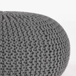 Roze ronde katoenen poef. Als je op zoek bent naar een vrolijk accent om je interieur op te vrolijken, dan is deze schattige gebreide ronde poef perfect. Met dik weefsel in een warme kleur en stevige, hoogwaardige vulling, kan het dienen als voetenbank, als basis voor een tafeltje of gewoon als decoratief stuk – de mogelijkheden zijn eindeloos. Wees creatief met het mixen van kleuren en maten om een ideale compositie voor je woonruimte te maken en geniet van de charmante moderne sfeer.