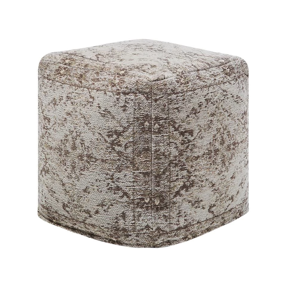 Rechthoekige poef met grijstonen. Deze mooi gevormde poef met een uniek patroon in subtiel grijs is de perfecte metgezel voor elke woonkamer en slaapkamer. Het tijdloze ontwerp past zich prachtig aan aan verschillende interieurontwerpen en is universeel toepasbaar als stoel, voetenbank of als decoratieve toevoeging aan jouw woonkamer.
