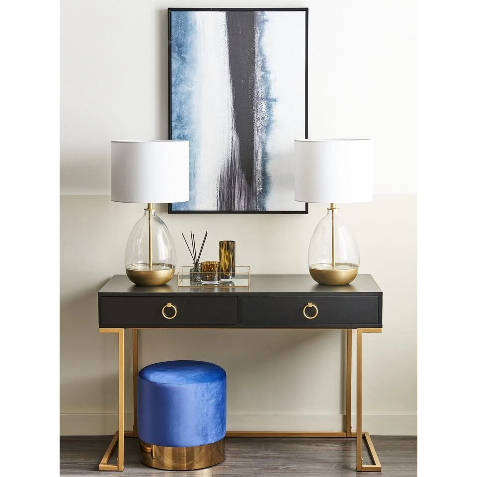 Gevoerde fluwelen poef met gouden accent. Voeg een luxe sfeer toe aan je interieur. Deze poef gemaakt van duurzame fluwelen polyesterstof in blauwe kleur voelt heerlijk zacht aan terwijl hij ook duurzaam en slijtvast is. De gouden voet benadrukt het moderne ontwerp en geeft het een glamoureuze uitstraling. Gebruik de poef als extra zitplaats of als voetenbankje en decoreer je ruimte met dit accentstuk.