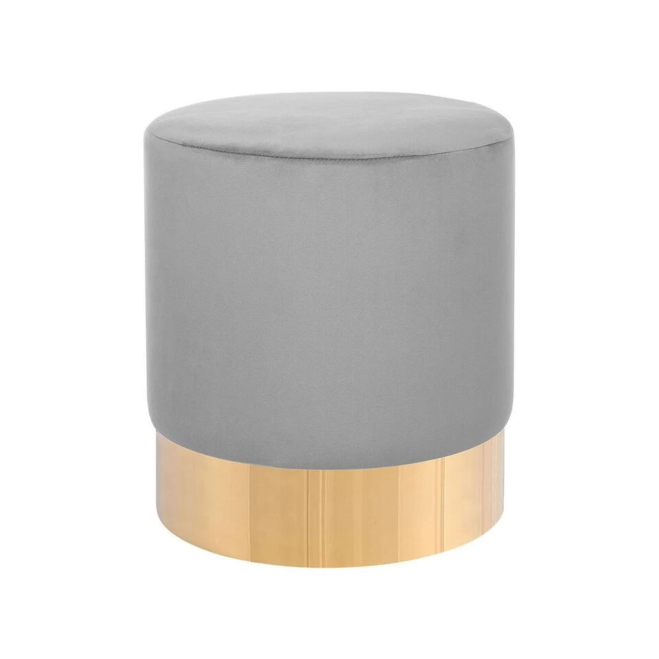 Gevoerde fluwelen poef met gouden accent. Voeg een luxe sfeer toe aan je interieur. Deze poef gemaakt van duurzame fluwelen polyesterstof in grijs kleur voelt heerlijk zacht aan terwijl hij ook duurzaam en slijtvast is. De gouden voet benadrukt het moderne ontwerp en geeft het een glamoureuze uitstraling. Gebruik de poef als extra zitplaats of als voetenbankje en decoreer je ruimte met dit accentstuk.