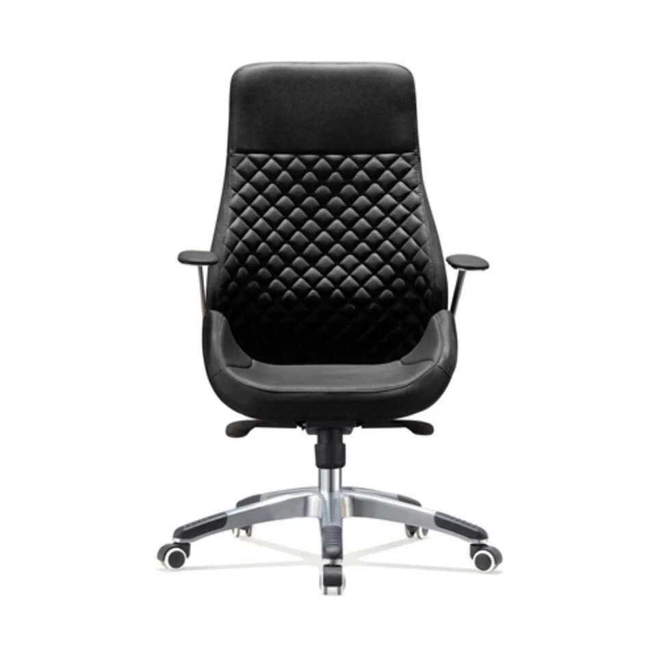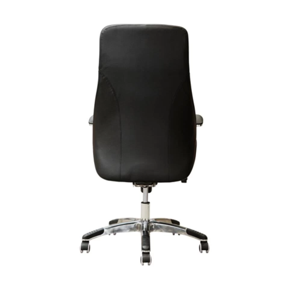 De zitting is uitgevoerd in PU leder waardoor deze een duurzame toepassing vormt in huis of op kantoor. PU-leer is een synthetische leersoort die qua uiterlijk nagenoeg niet van echt leer te onderscheiden is. Het is slijtvast, vuilbestendig en kan in verschillende elegante kleuren worden besteld. De armleuningen en stervoet zijn chroomkleurig wat zorgt voor een luxe uitstraling.