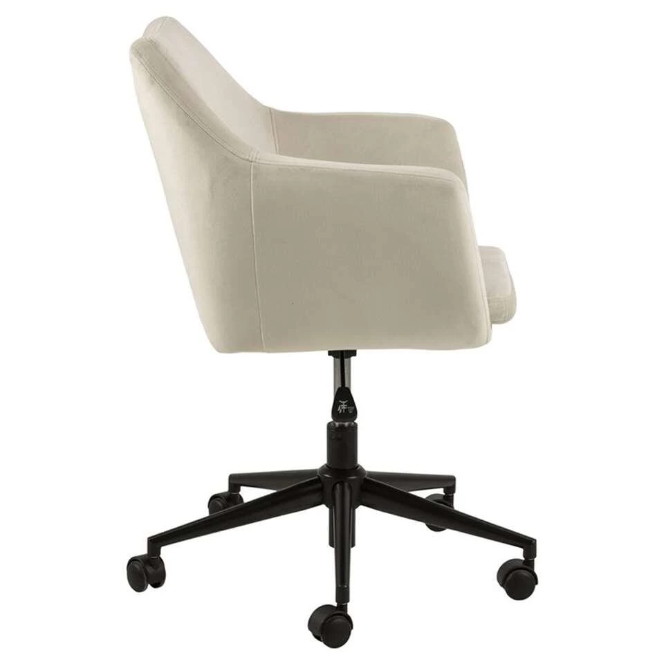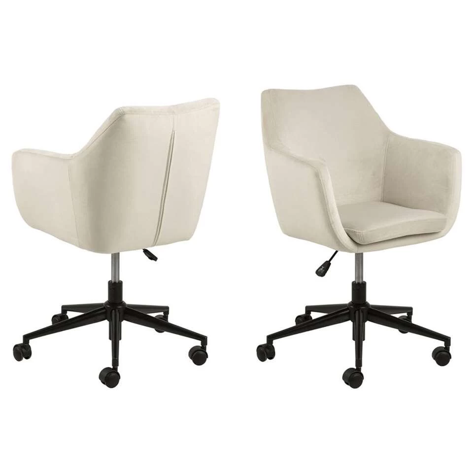 Bureaustoel Uppsala is bekleed met zandkleurige velvet stof die heerlijk zacht aanvoelt. Deze bureaustoel zit zeer comfortabel.