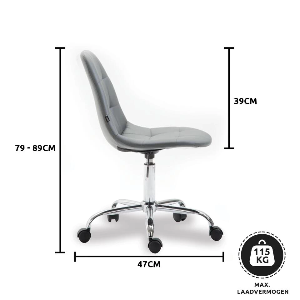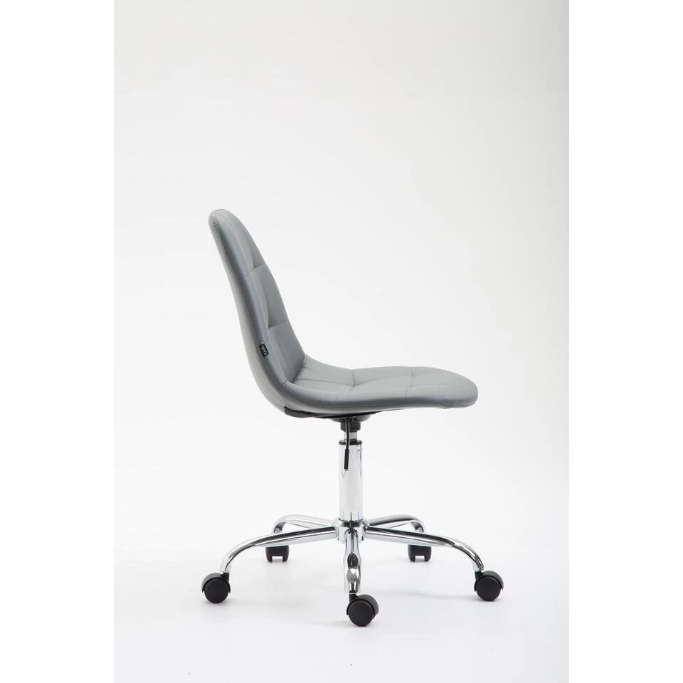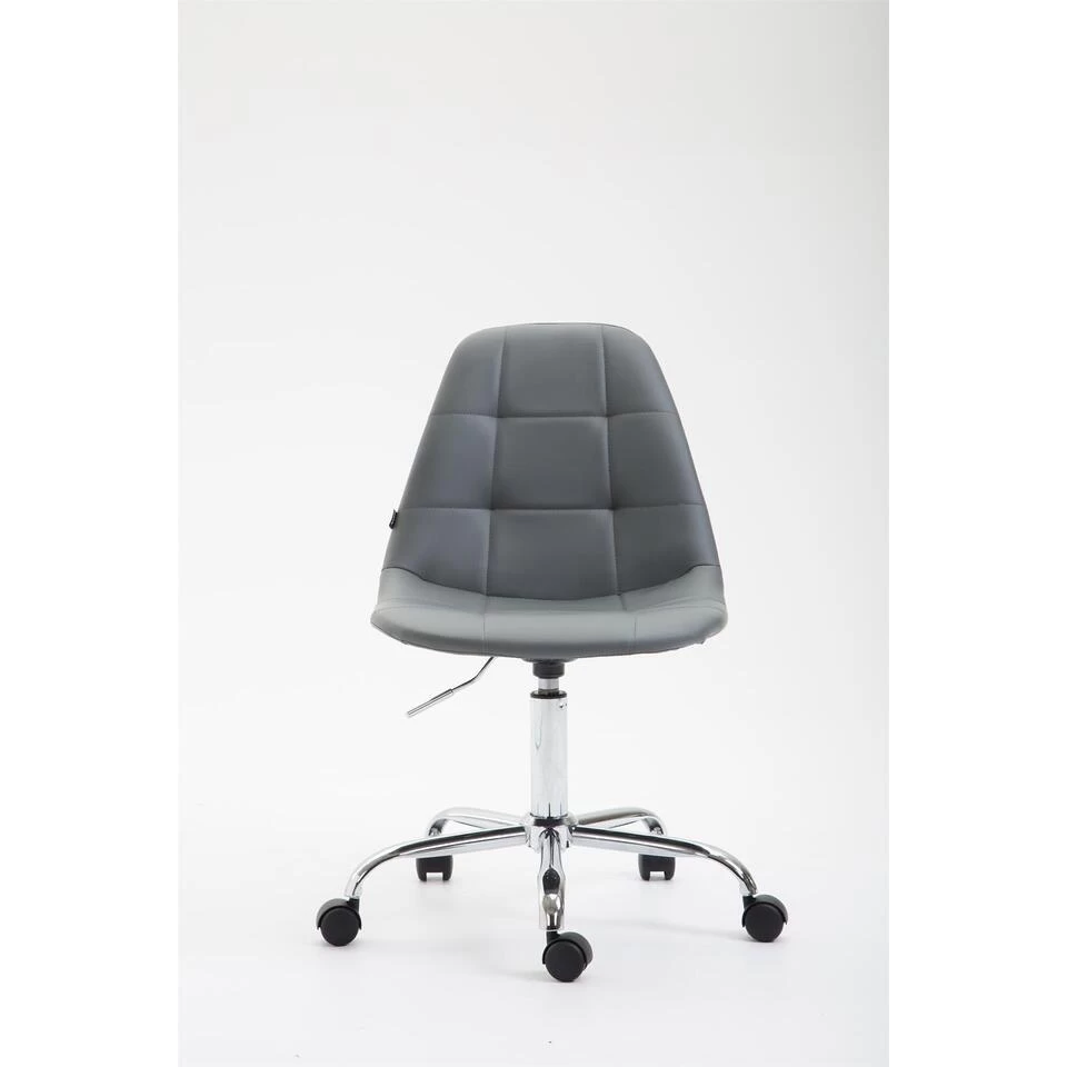 De bureaustoel Reims maakt indruk met zijn comfortabele bekleding en een slank uiterlijk. De rechthoekige decoratieve stiksels en heldere kleuropties maken de bureaustoel Reims een visueel hoogtepunt op elke werkplek. De hoogwaardige zit is bedekt met een kunstlederen bekleding en dankzij een traploos verstelbare zithoogte is een ergonomische zitting gegarandeerd. Hij staat stabiel op vijf lichtgewicht zwenkwielen en een frame van metaal in chroomlook. Het praktische ontwerp maakt het geschikt voor kleinere ruimtes en flexibel in gebruik. Of het nu harde of zachte ondergrond is, u zult altijd gemakkelijk en losjes over de vloer kunnen verplaatsen. De bureaustoel wordt gedemonteerd geleverd.