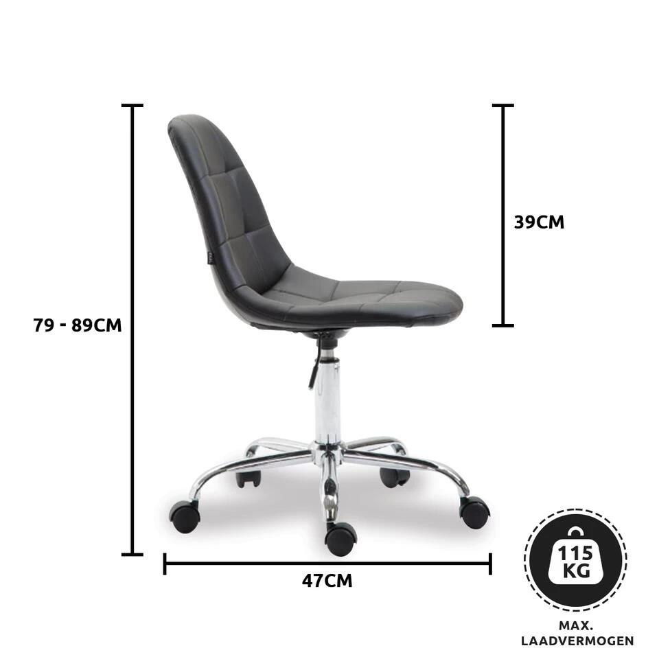 De bureaustoel Reims maakt indruk met zijn comfortabele bekleding en een slank uiterlijk. De rechthoekige decoratieve stiksels en heldere kleuropties maken de bureaustoel Reims een visueel hoogtepunt op elke werkplek. De hoogwaardige zit is bedekt met een kunstlederen bekleding en dankzij een traploos verstelbare zithoogte is een ergonomische zitting gegarandeerd. Hij staat stabiel op vijf lichtgewicht zwenkwielen en een frame van metaal in chroomlook. Het praktische ontwerp maakt het geschikt voor kleinere ruimtes en flexibel in gebruik. Of het nu harde of zachte ondergrond is, u zult altijd gemakkelijk en losjes over de vloer kunnen verplaatsen. De bureaustoel wordt gedemonteerd geleverd.