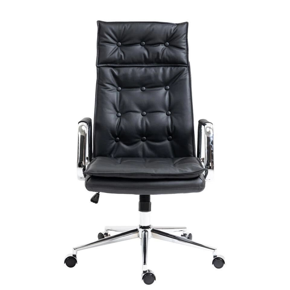 De exclusieve Sotira bureaustoel is een bureaustoel met een zeer hoogwaardige stoffering en een moderne uitstraling. De echt lederen bekleding in Chesterfield-design ziet er niet alleen heel mooi uit, ze is ook bijzonder robuust en gemakkelijk schoon te maken. Een stevig metalen frame in chroomlook zorgt ook voor een veilige stand. De zithoogte is traploos instelbaar en garandeert urenlang ergonomisch zitten. Het ingebouwde kantelmechanisme zorgt ook voor meer bewegingsvrijheid. De Sotira bureaustoel staat stevig op vijf lichtlopende wieltjes.