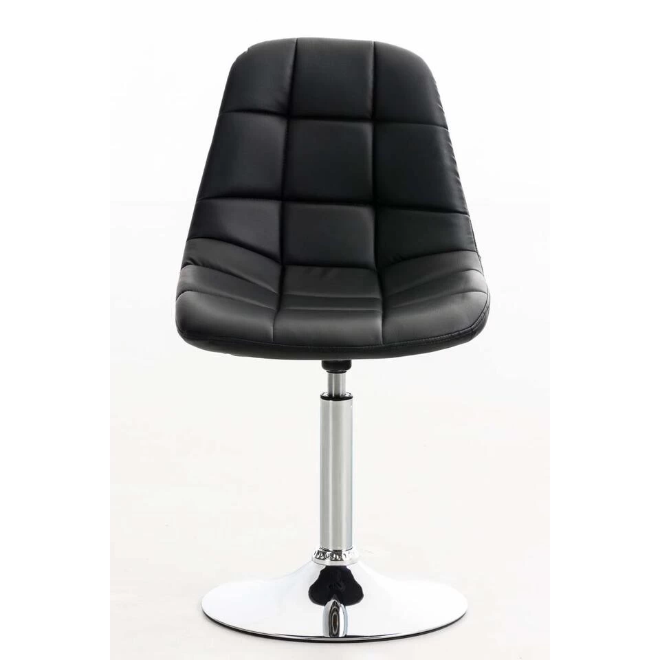 De eetkamerstoel Emil maakt indruk met zijn comfortabele bekleding en een slank, afgerond uiterlijk. Rechthoekige decoratieve stiksels en heldere kleuren maken het een visueel hoogtepunt. De zit is bedekt met een kunstlederen bekleding die een ergonomische zitplaats garandeert. Hij staat stabiel op een metalen trompetvoet in chroomlook en kan 360 ° worden gedraaid.