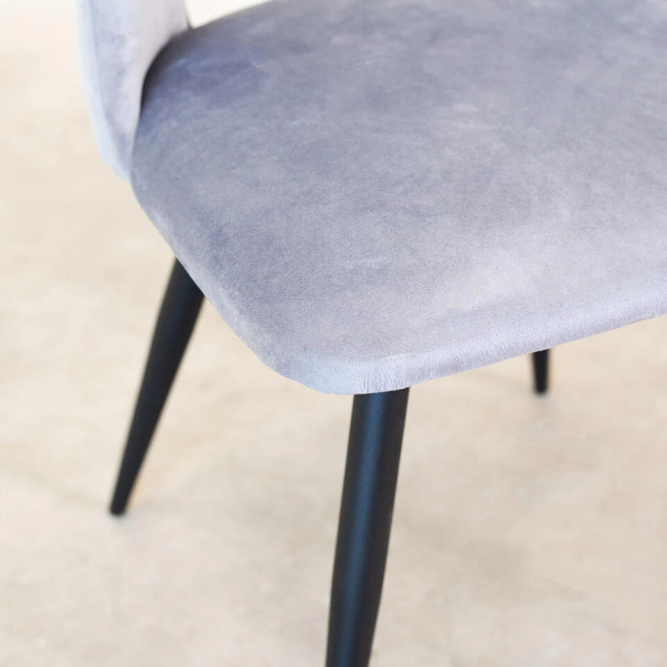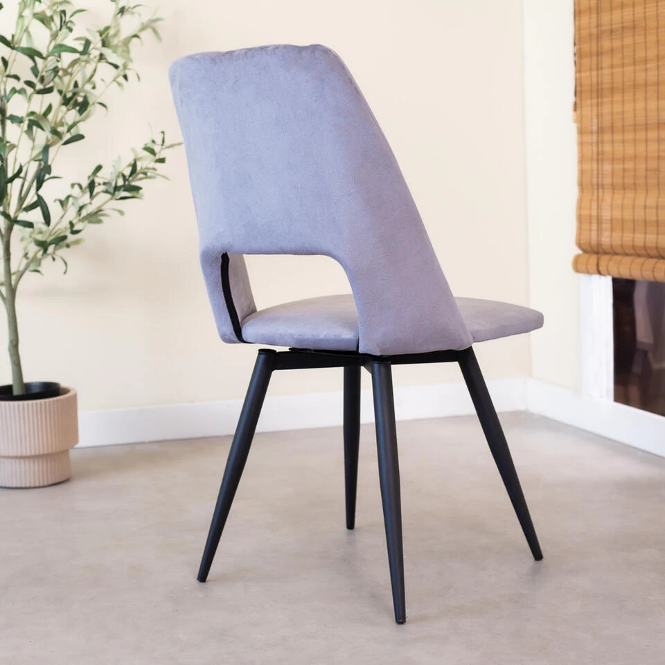 De draaibare eetkamerstoel is bekleed met velvet. Fluweel is een stofsoort ontstaan in Azië en dat rond 1400 is overgewaaid naar Europa. Bij fluweel worden er kleine lusjes geweven. Hierdoor ontstaat er aan de bovenkant een zachte, glanzende stof.