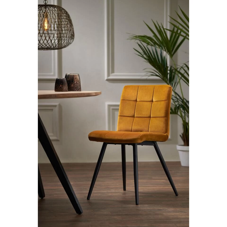 Op zoek naar een moderne en comfortabele eetkamerstoel? De Olive van Light & Living is een gewatteerde eetkamerstoel die bekleed is met een zachte oker velvet stof. De rugleuning en de zitting hebben een gestikt blok patroon, wat de stoel een extra leuke dimensie geeft. De stoelen worden per stuk geleverd en hebben een afmeting van 57x49x84 cm. De zithoogte is 47 cm en de zitdiepte is 41 cm. De ideale eetkamerstoel voor jouw eethoek!