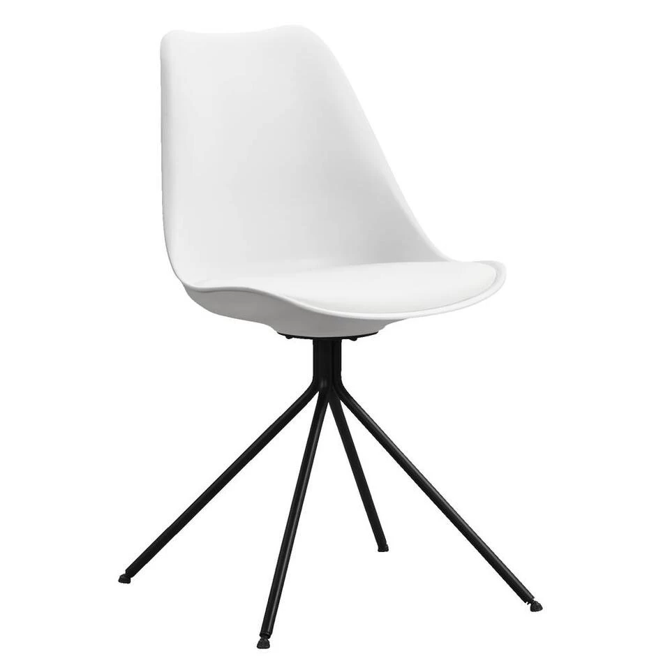 Eetkamerstoel Senja is wit met een zwart metalen onderstel. Deze moderne stoel is gemaakt van kunststof, dus gemakkelijk te reinigen met een vochtig doekje.Â