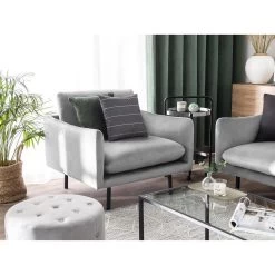 Fauteuil Viborg is een zeer luxe, comfortabele stoel in de stoere kleur grijs. Deze royaal zittende, gestoffeerde stoel is gecapitonneerd en heeft slanke zwarte pootjes. Deze fauteuil heeft brede armleuningen en dat geeft nog meer comfort. Viborg is een ware aanwinst voor je woonkamer!