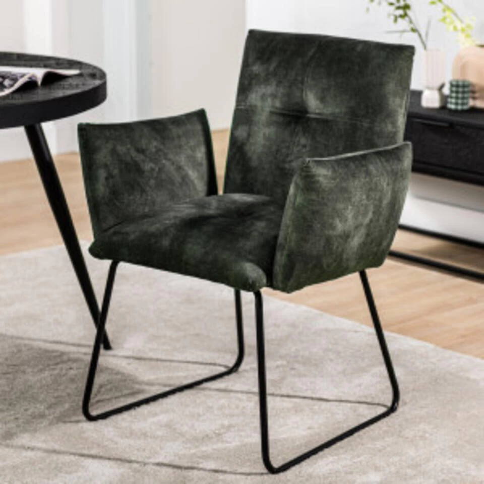 De eetkamerstoel V615 heeft een strak en modern design en hebben een afwerking die moeiteloos in elk interieur past. De zwarte stoelpoten voegen een mooie verfijning toe en bieden een stevige basis voor een comfortabele zitervaring. Onze eetkamerstoelen zijn gemaakt van hoogwaardige materialen en zorgen voor duurzaamheid en een lange levensduur. De zachte en ondersteunende zitting, rugleuning en armeleuningen zijn bekleed met premium stof, wat ultiem comfort biedt tijdens lange diners of bijeenkomsten.