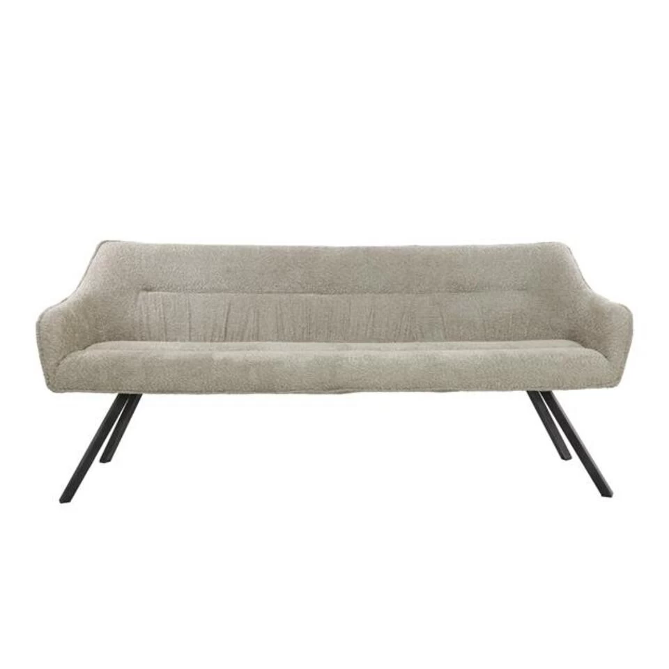 Deze eigentijdse eetkamerbank is uitgevoerd in bouclé met een metalen frame. De bank heeft een zeer comfortabele zit. De bank heeft een bijpassende eetkamerstoel.