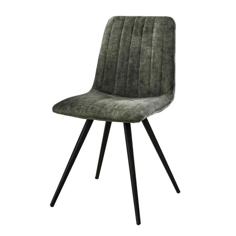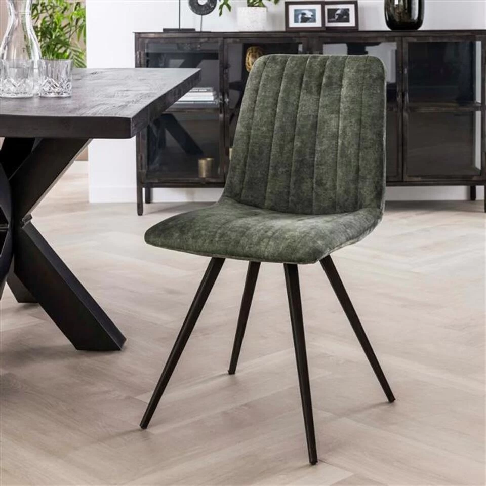 Deze trendy eetkamerstoel is uitgevoerd in velvet met een metalen frame. De stoel zit erg comfortabel, dus een trendy stoel met een hoog comfort! De stoel is in verschillende kleuren uitgevoerd en er is gekozen van een ’two-toned’ velvet stof.