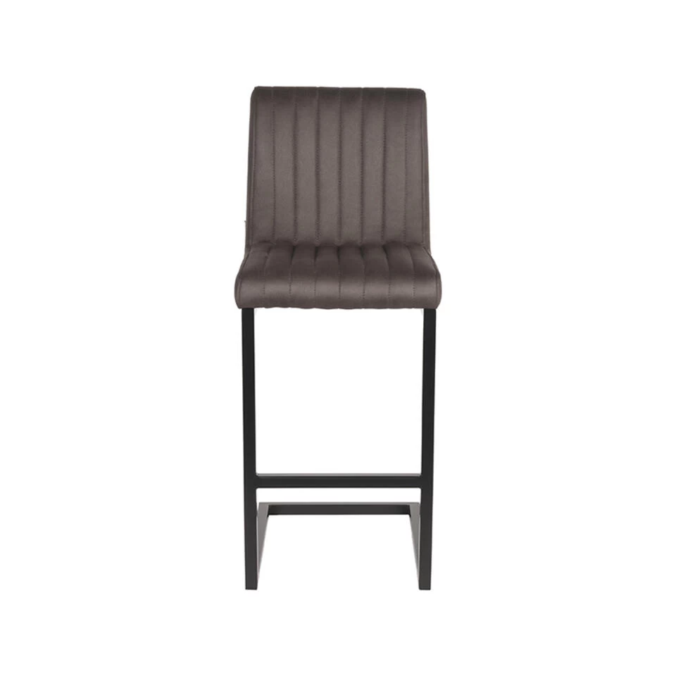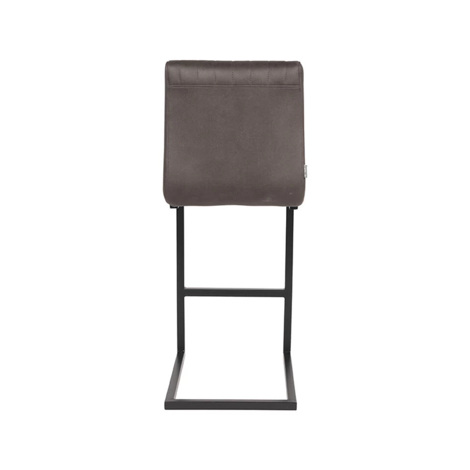 Barkruk Milo, uitgevoerd in een luxe antraciet kleurige microvezel heeft een vierkant gevormde zitting voorzien van een luxe stiksel. Het stiksel bestaat uit 8 verticale banen. Het u-vormige metalen frame in de kleur zwart geeft de stoel naast zijn fraaie en elegante uitstraling ook nog eens een bijzonder comfort door de lichte vering in de sledepoot. De poot is voorzien van een extra horizontale pijp waar je je voeten op kunt laten rusten.