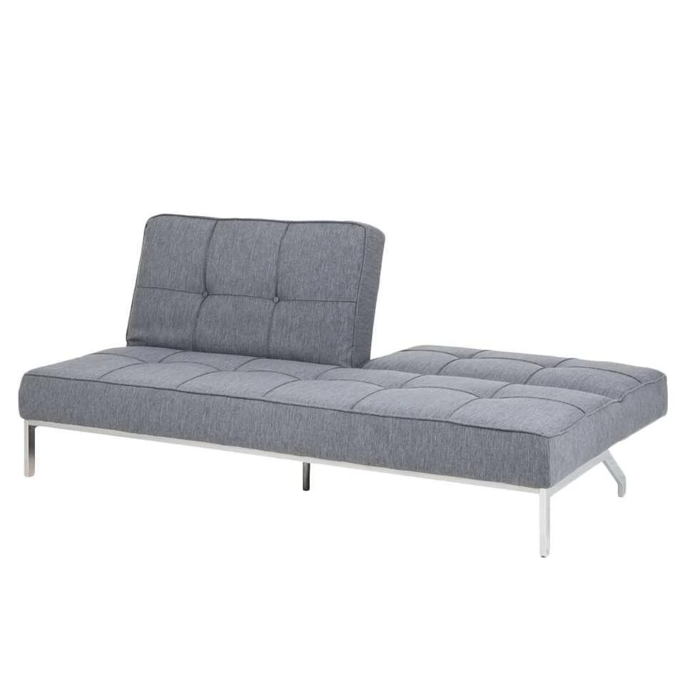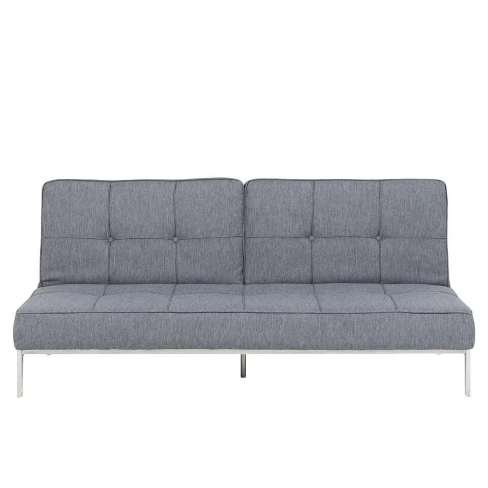 Slaapbank Norha is een comfortabele slaapbank met een moderne uitstraling. De bank is bekleed met een sterke grijze stof. De knopen geven een speels effect en de chroomkleurige pootjes maken het geheel helemaal af. Dit logeerbed is superhandig als je klein behuisd bent of wanneer je onverwachts logees krijgt. De bank tover je in een handomdraai om tot een slaapplaats van 198×123,5 cm.